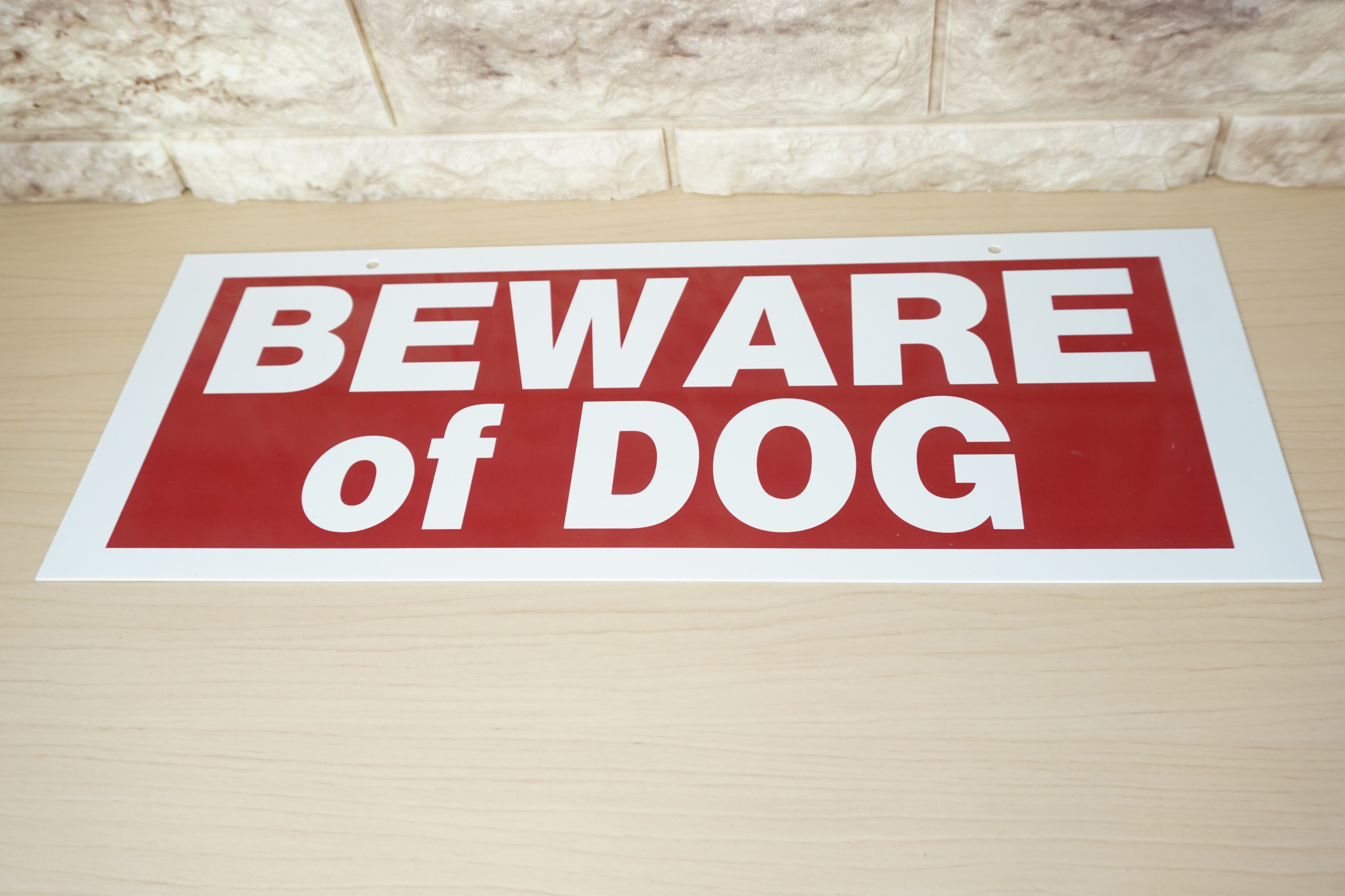 アメリカで実際使われているプラスチックの看板を見つけてきました。 BEWARE of DOG 猛犬注意 です。 こちらの商品は新品となります。 サイズ:38cm×15.5cm