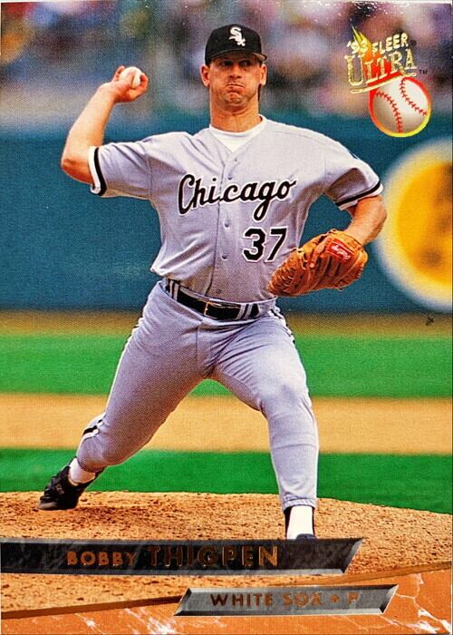 MLBのカードが大量入荷してきました! MLBカード 93FLEER Bobby Thigpen #180 WHITE SOXです。 ぜひあなたのコレクションに加えてください! 特にキズなどありませんが、中古品ですので、状態は写真にてご確認ください。 50枚以上購入ご希望の方は別途ご連絡ください。お値段ディスカウントいたします。