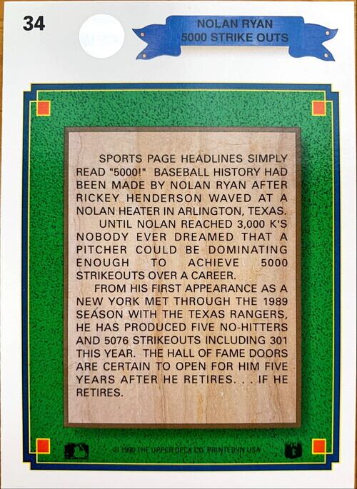 MLBのカードが大量入荷してきました! MLBカード 90UPPERDECK Nolan Ryan #034 RANGERSです。 ぜひあなたのコレクションに加えてください! 特にキズなどありませんが、中古品ですので、状態は写真にてご確認ください。 50枚以上購入ご希望の方は別途ご連絡ください。お値段ディスカウントいたします。