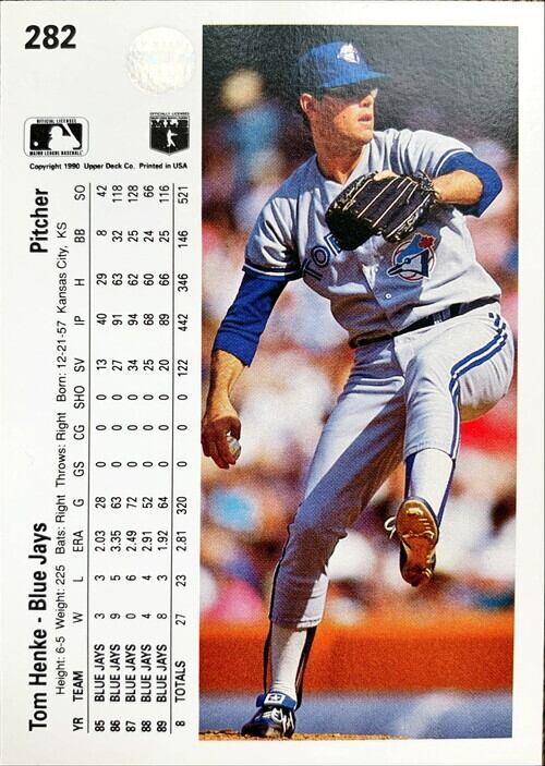 MLBのカードが大量入荷してきました! MLBカード 90UPPERDECK Tom Henke #282 BLUEJAYSです。 ぜひあなたのコレクションに加えてください! 特にキズなどありませんが、中古品ですので、状態は写真にてご確認ください。 50枚以上購入ご希望の方は別途ご連絡ください。お値段ディスカウントいたします。
