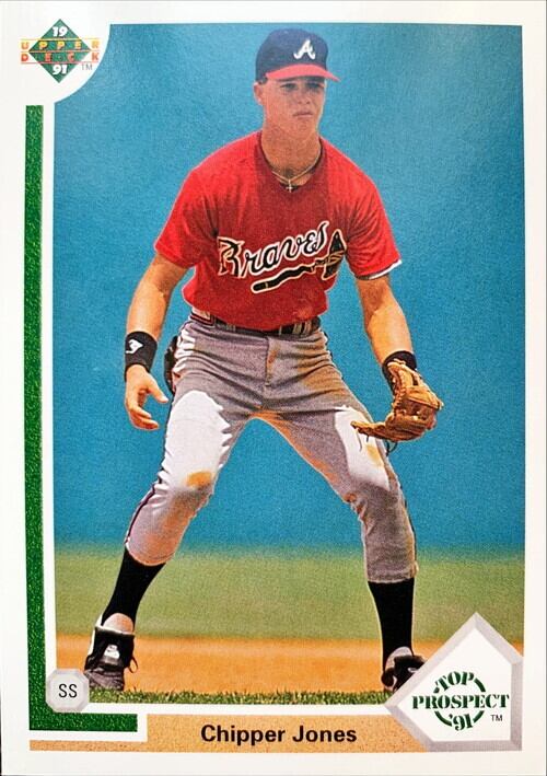 MLBのカードが大量入荷してきました! MLBカード 91UPPERDECK Chipper Jones #055 BRAVESです。 ぜひあなたのコレクションに加えてください! 特にキズなどありませんが、中古品ですので、状態は写真にてご確認ください。 50枚以上購入ご希望の方は別途ご連絡ください。お値段ディスカウントいたします。
