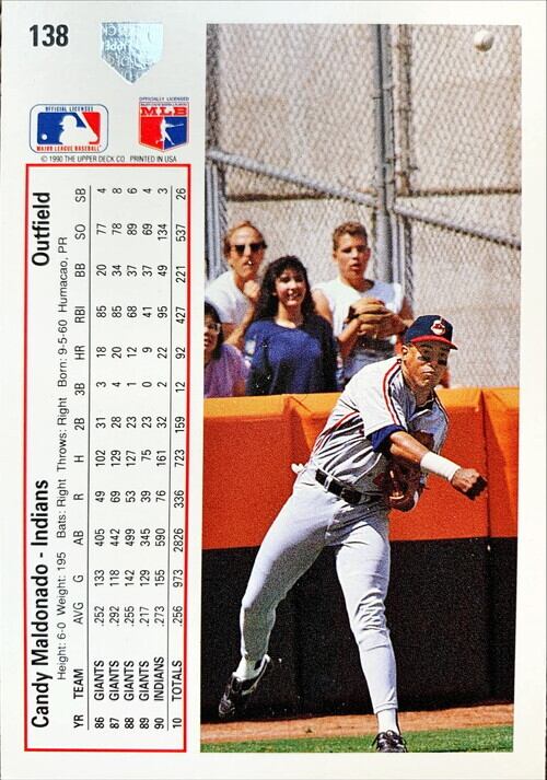MLBのカードが大量入荷してきました! MLBカード 91UPPERDECK Candy Maldonado #138 INDIANSです。 ぜひあなたのコレクションに加えてください! 特にキズなどありませんが、中古品ですので、状態は写真にてご確認ください。 50枚以上購入ご希望の方は別途ご連絡ください。お値段ディスカウントいたします。