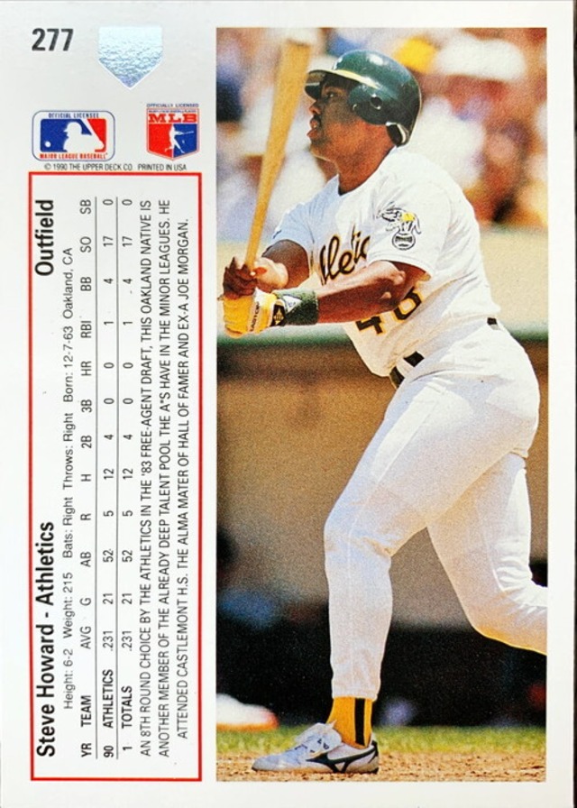 MLBのカードが大量入荷してきました! MLBカード 91UPPERDECK Steve Howard #277 ATHLETICSです。 ぜひあなたのコレクションに加えてください! 特にキズなどありませんが、中古品ですので、状態は写真にてご確認ください。 50枚以上購入ご希望の方は別途ご連絡ください。お値段ディスカウントいたします。