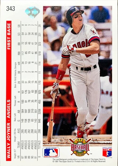 MLBのカードが大量入荷してきました! MLBカード 92UPPERDECK Wally Joyner #343 ANGELSです。 ぜひあなたのコレクションに加えてください! 特にキズなどありませんが、中古品ですので、状態は写真にてご確認ください。 50枚以上購入ご希望の方は別途ご連絡ください。お値段ディスカウントいたします。