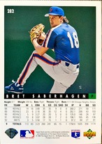 MLBのカードが大量入荷してきました! MLBカード 93UPPERDECK Bret Saberhagen #282 METSです。 ぜひあなたのコレクションに加えてください! 特にキズなどありませんが、中古品ですので、状態は写真にてご確認ください。 50枚以上購入ご希望の方は別途ご連絡ください。お値段ディスカウントいたします。